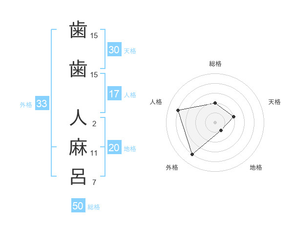 歯歯 人麻呂さんの外格は33画の4点!