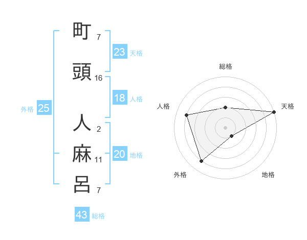 町頭 人麻呂さんを姓名の画数から五運を鑑定