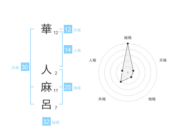 華 人麻呂さんの総格は32画の5点!