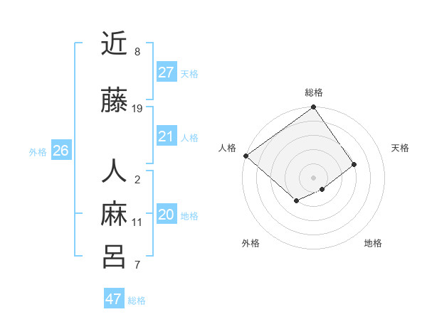 近藤 人麻呂さんの総格は47画の5点!