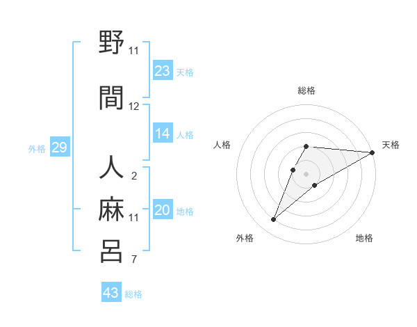 野間 人麻呂さんを姓名の画数から五運を鑑定