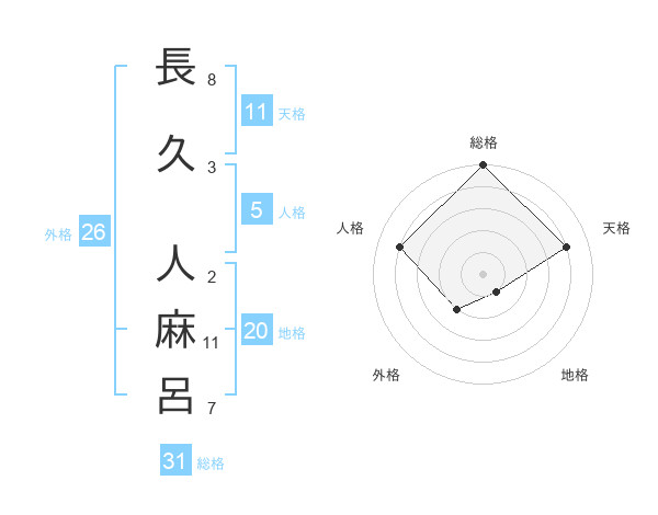 長久 人麻呂さんを姓名の画数から五運を鑑定
