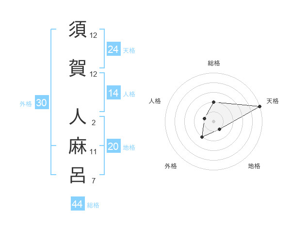 須賀 人麻呂さんの総格は44画の2点