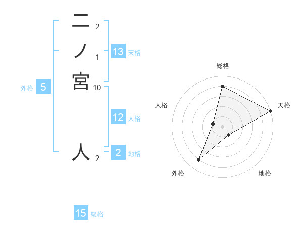 二ノ宮 人さんを姓名の画数から五運を鑑定