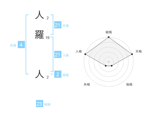 人羅 人さんの総格は23画の5点