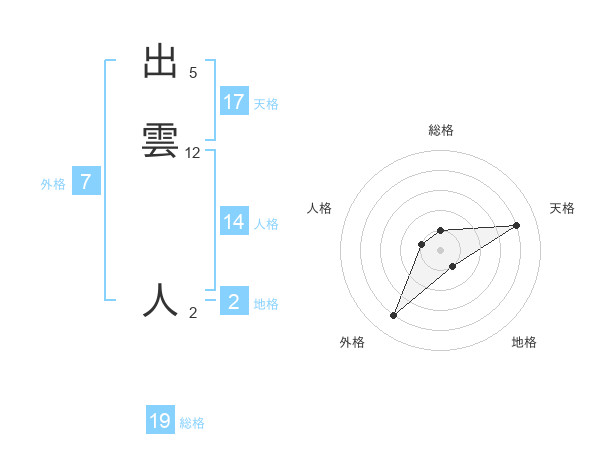 出雲 人さんの天格は17画の4点!
