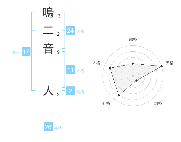 嗚二音 人さんの天格は24画の5点!