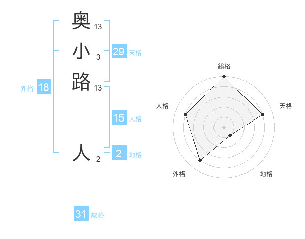 奥小路 人さんの天格は29画の4点!