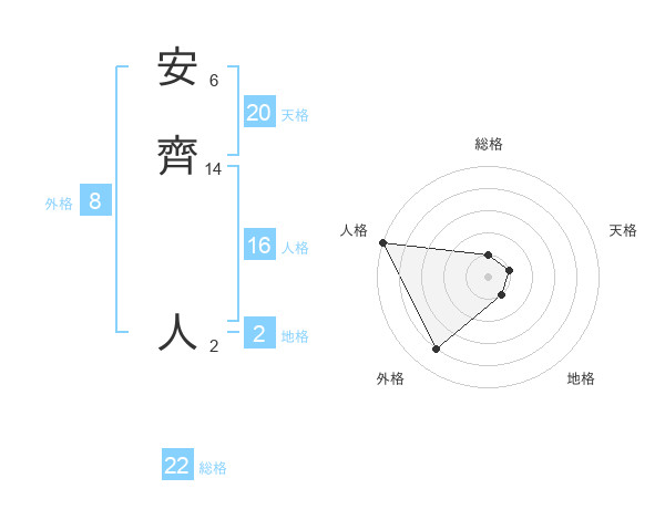 安齊 人さんの総格は22画の1点!