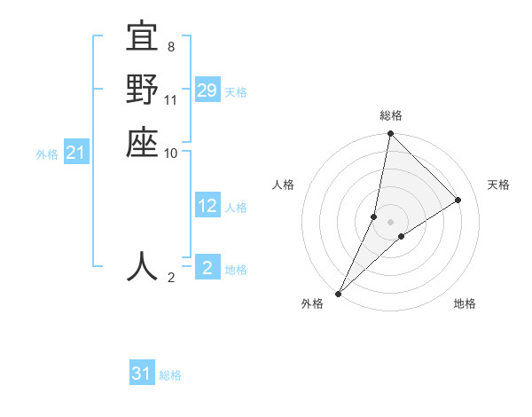宜野座 人さんの外格は21画の5点!
