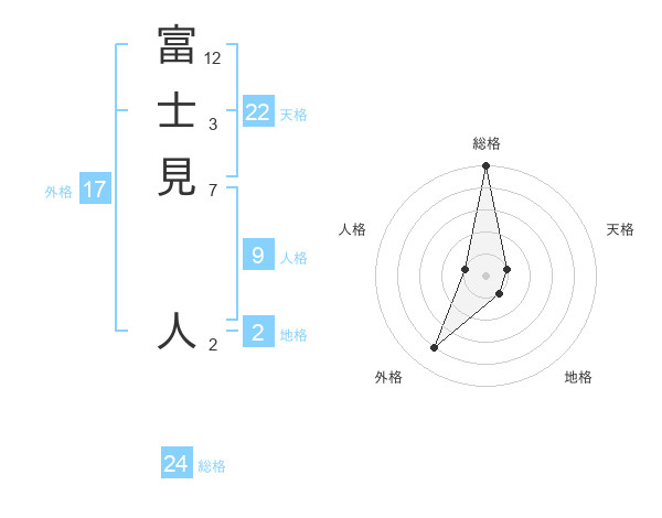 富士見 人さんの総格は24画の5点!