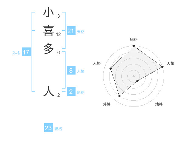 小喜多 人さんの天格は21画の5点!