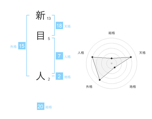 新目 人さんの総格は20画の1点!