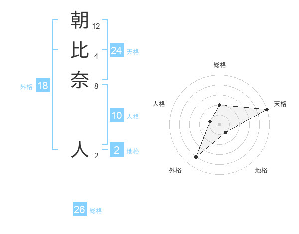 朝比奈 人さんの総格は26画の2点!