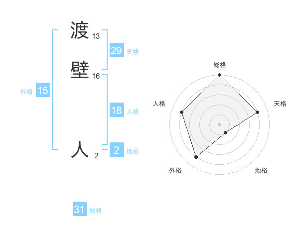 渡壁 人さんの総格は31画の5点!