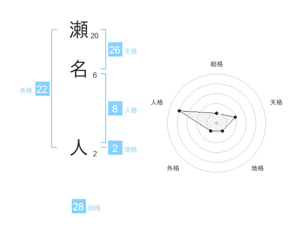 瀬名 人さんの総格は28画の1点