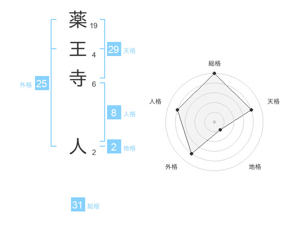 薬王寺 人さんを姓名の画数から五運を鑑定