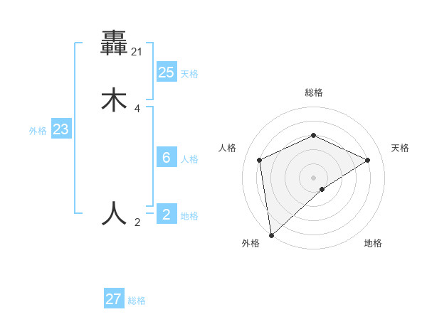轟木 人さんの天格は25画の4点!