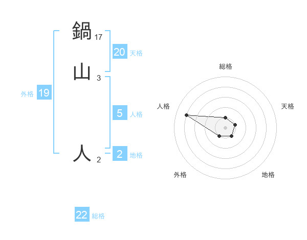 鍋山 人さんを姓名の画数から五運を鑑定