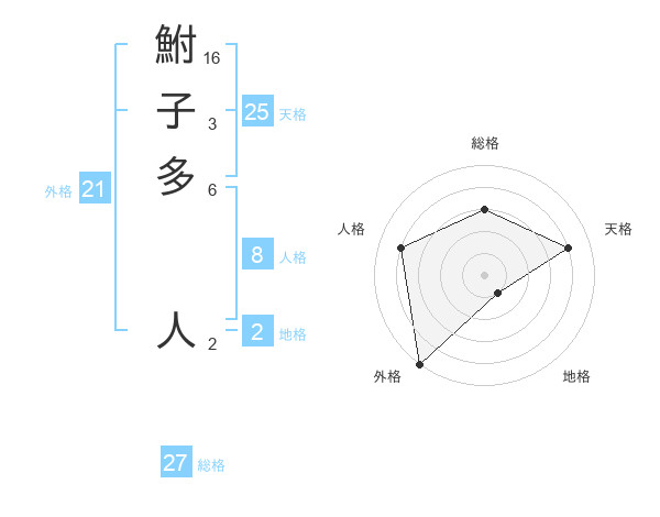 鮒子多 人さんの総格は27画の3点!
