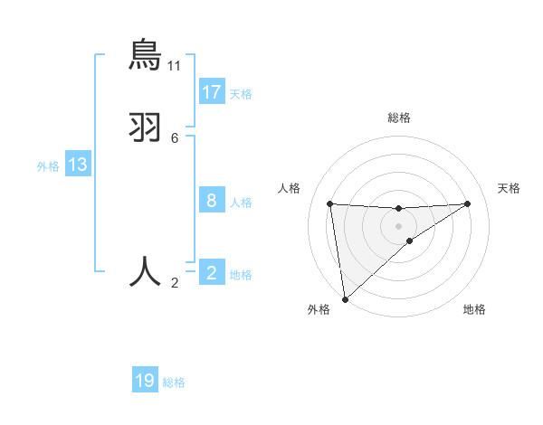 鳥羽 人さんを姓名の画数から五運を鑑定