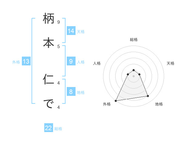 柄本 仁でさんの外格は13画の5点!