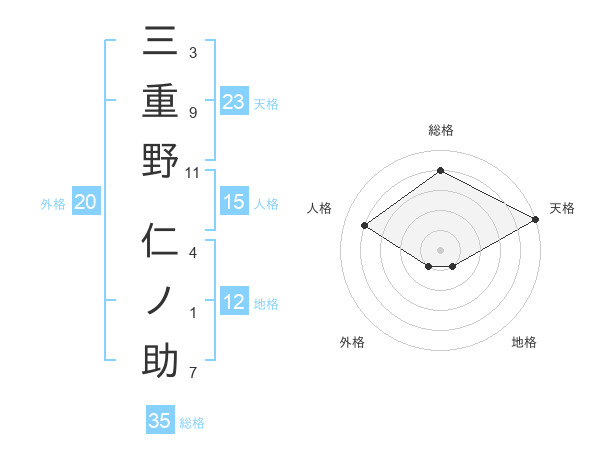 三重野 仁ノ助さんを姓名の画数から五運を鑑定