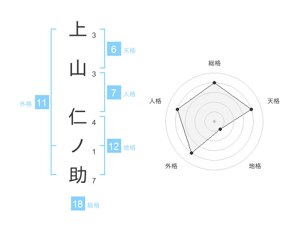 上山 仁ノ助さんを姓名の画数から五運を鑑定