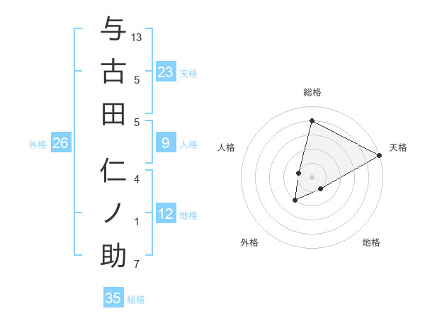 与古田 仁ノ助さんを姓名の画数から五運を鑑定
