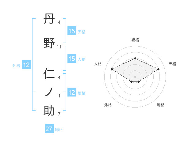丹野 仁ノ助さんを姓名の画数から五運を鑑定