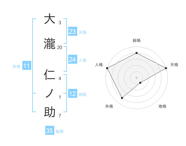 大瀧 仁ノ助さんの総格は35画の4点!
