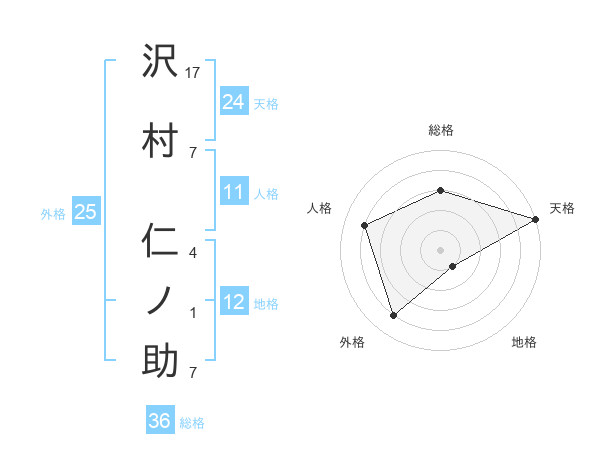 沢村 仁ノ助さんを姓名の画数から五運を鑑定
