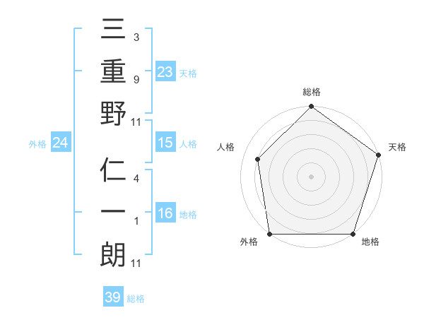 三重野 仁一朗さんを姓名の画数から五運を鑑定