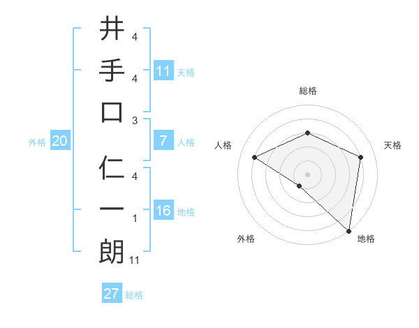 井手口 仁一朗さんを姓名の画数から五運を鑑定
