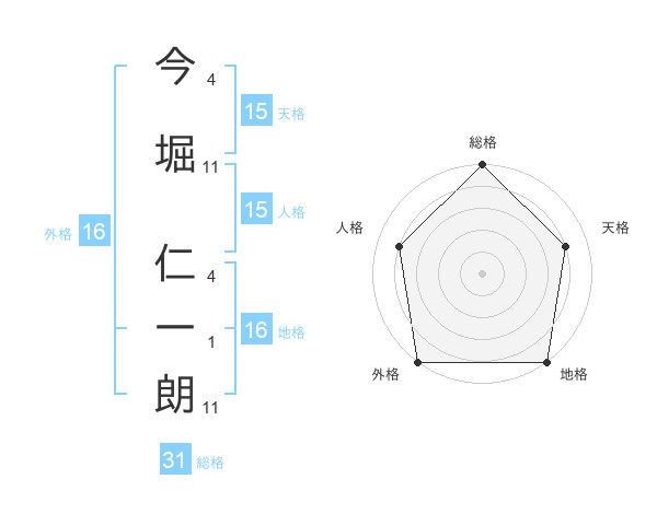 今堀 仁一朗さんを姓名の画数から五運を鑑定