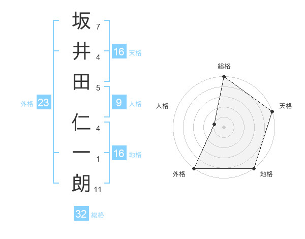 坂井田 仁一朗さんの総格は32画の5点!