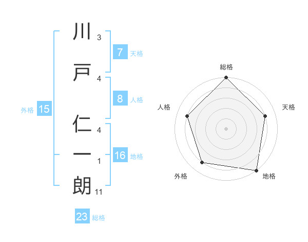 川戸 仁一朗さんを姓名の画数から五運を鑑定