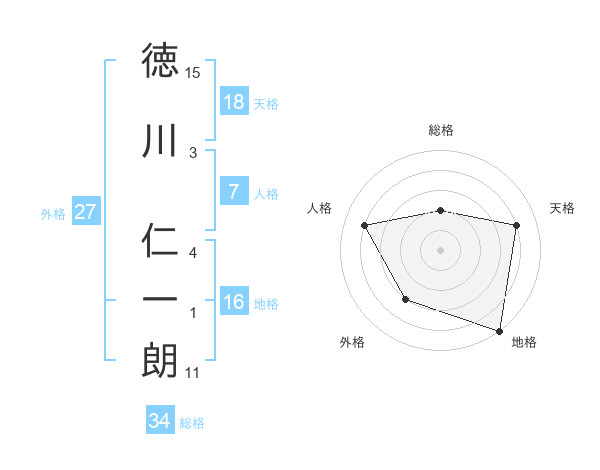 徳川 仁一朗さんを姓名の画数から五運を鑑定