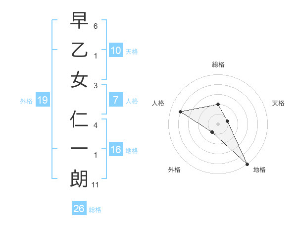 早乙女 仁一朗さんの総格は26画の2点!