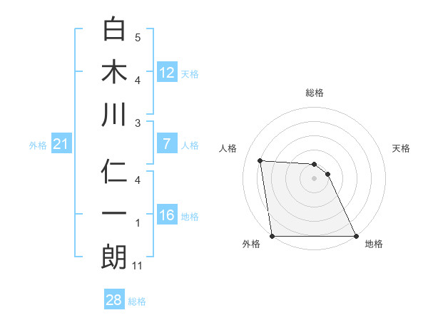 白木川 仁一朗さんを姓名の画数から五運を鑑定