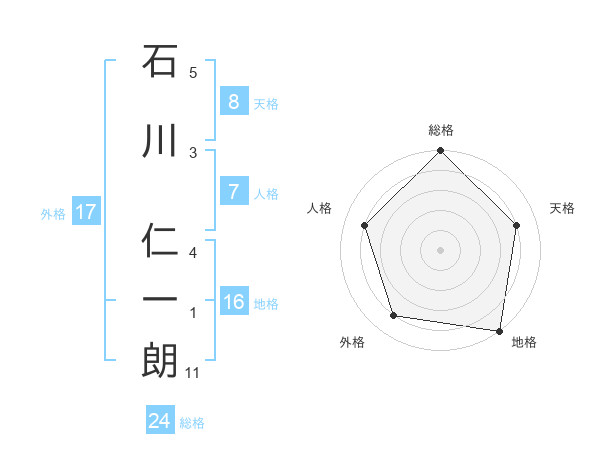 石川 仁一朗さんを姓名の画数から五運を鑑定