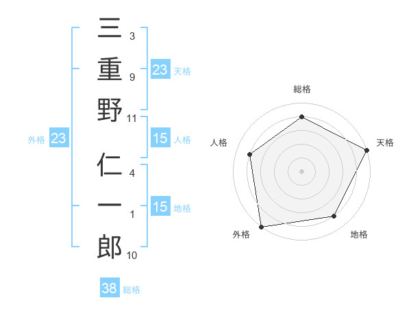 三重野 仁一郎さんを姓名の画数から五運を鑑定