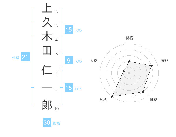 上久木田 仁一郞さんを姓名の画数から五運を鑑定