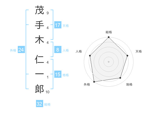 茂手木 仁一郞さんを姓名の画数から五運を鑑定