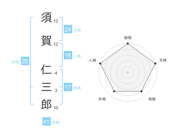 須賀 仁三郎さんの総格は41画の5点!