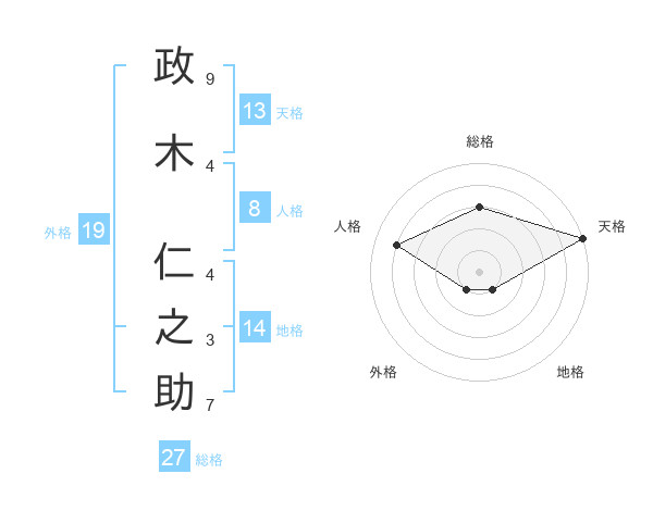 政木 仁之助さんを姓名の画数から五運を鑑定