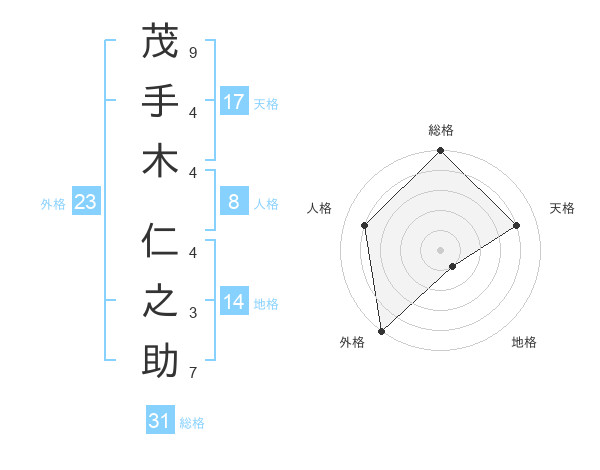 茂手木 仁之助さんの総格は31画の5点!