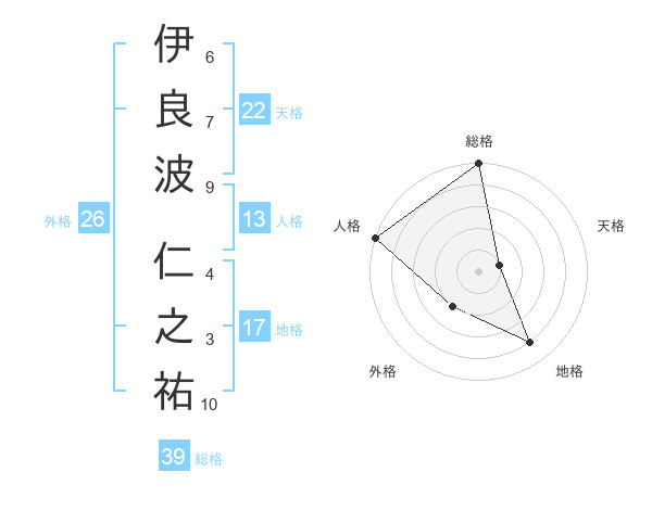 伊良波 仁之祐さんの総格は39画の5点!