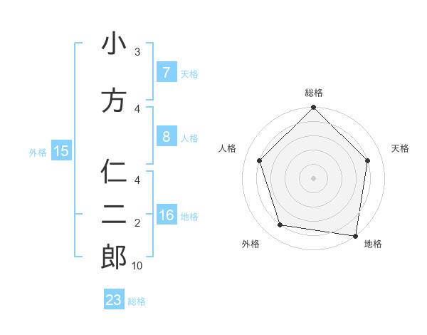 小方 仁二郎さんを姓名の画数から五運を鑑定