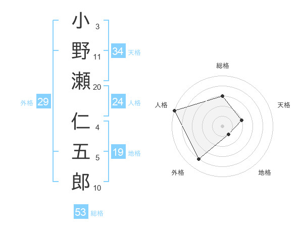 小野瀬 仁五郎さんを姓名の画数から五運を鑑定